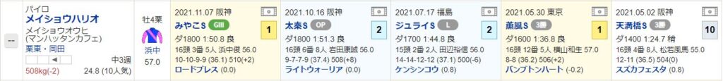 メイショウハリオは十分勝てるデータです。一昨年の勝ち馬テーオーケインズが帝王賞勝ちJBCクラシック4着からチャンピオンズC勝っていることから類似したデータなので狙ってよいと思われます。