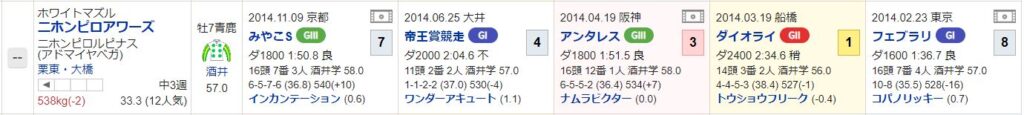 勝ちがないステップのみやこSからなので買いずらい点、前々走までは条件戦だった点、この2点がマイナスです。