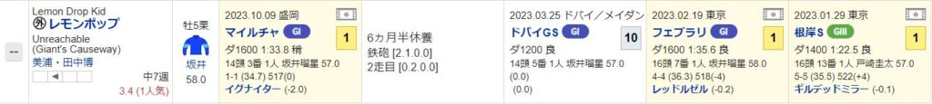 レモンポップは南部杯の前に半年の休養があるので判断が難しいところです。