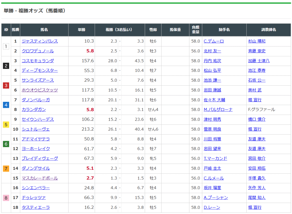 (JRA公式サイトより:オッズは土曜日10:16ごろ)