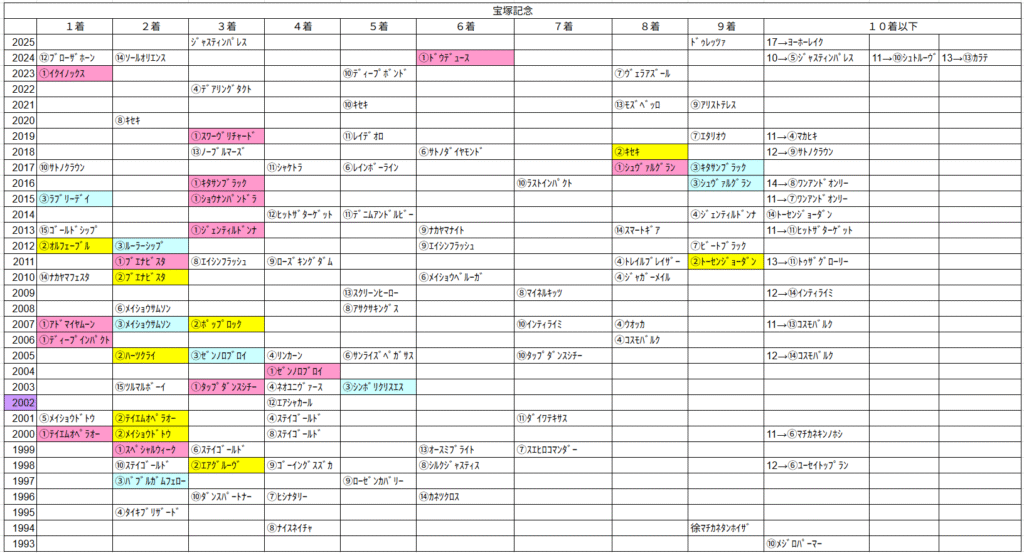 宝塚記念の3着以内の馬はかなりの成績になります。4着以下の場合はG1連対実績があり、天皇賞3着以内か京都大賞典3着以内からのステップが必要と思われます。