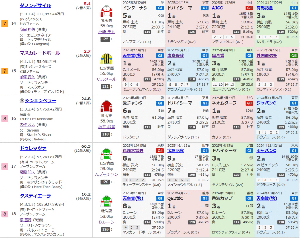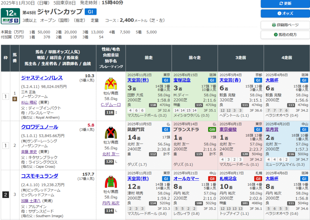 今年の外国馬はこれまでとは違うとみました。外国馬だから切るのは危険でG1を3連勝中でドバイシーマクラシックでも連対できる実績はジャパンカップの適正も十分あると判断しました。