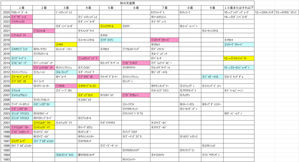 これを見ると天皇賞秋の勝ち馬が断然です。
