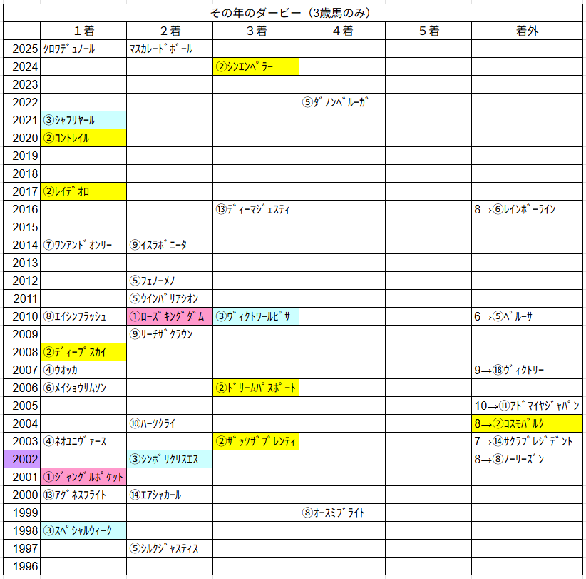 ダノンデサイル、クロワデュノールあたりも最近の傾向では十分狙えます。
