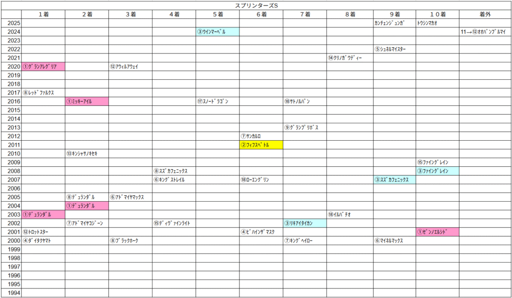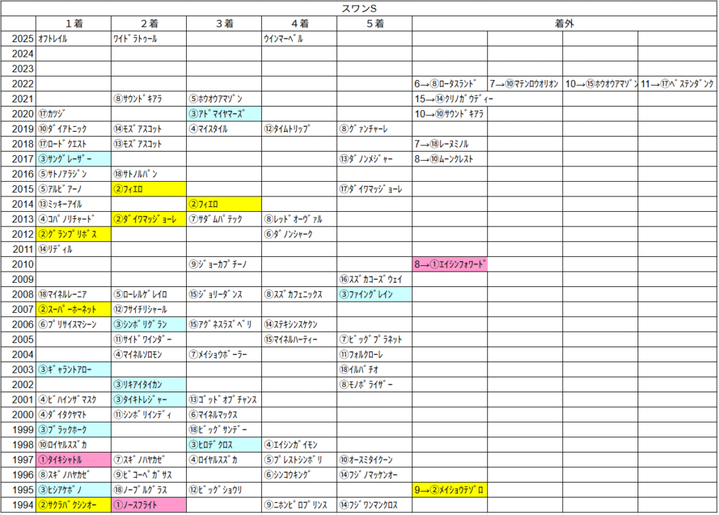 1400mまでの馬が好走したり、スワンSとマイルCSの両方を好走できるほどの力がない馬が出ているためだと思われます。