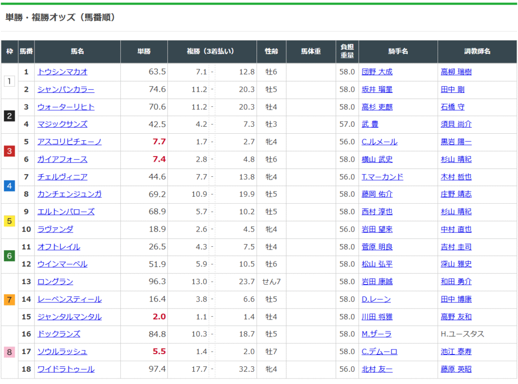 (JRA公式サイトより:オッズは土曜日11:00ごろ)