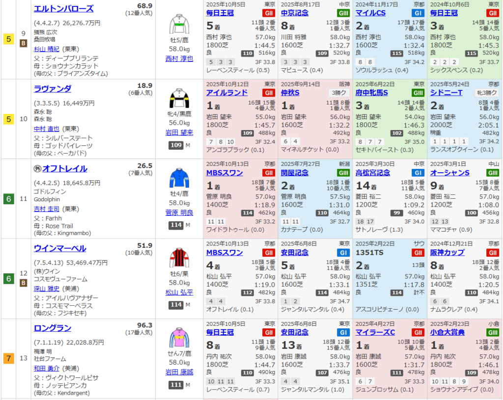 今年もオフトレイルやワイドラトゥールは同じだと見ています。マイルCSでは厳しいでしょう。