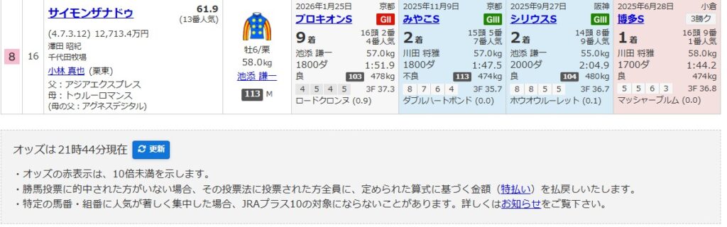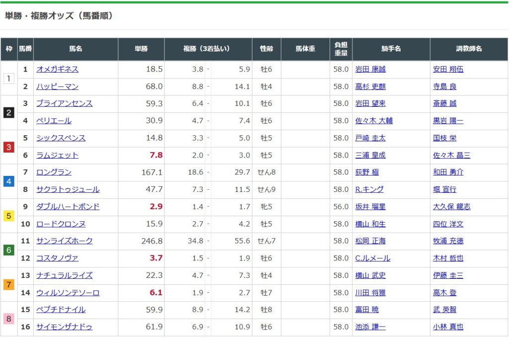 (JRA公式サイトより:オッズは土曜日21:44時点)