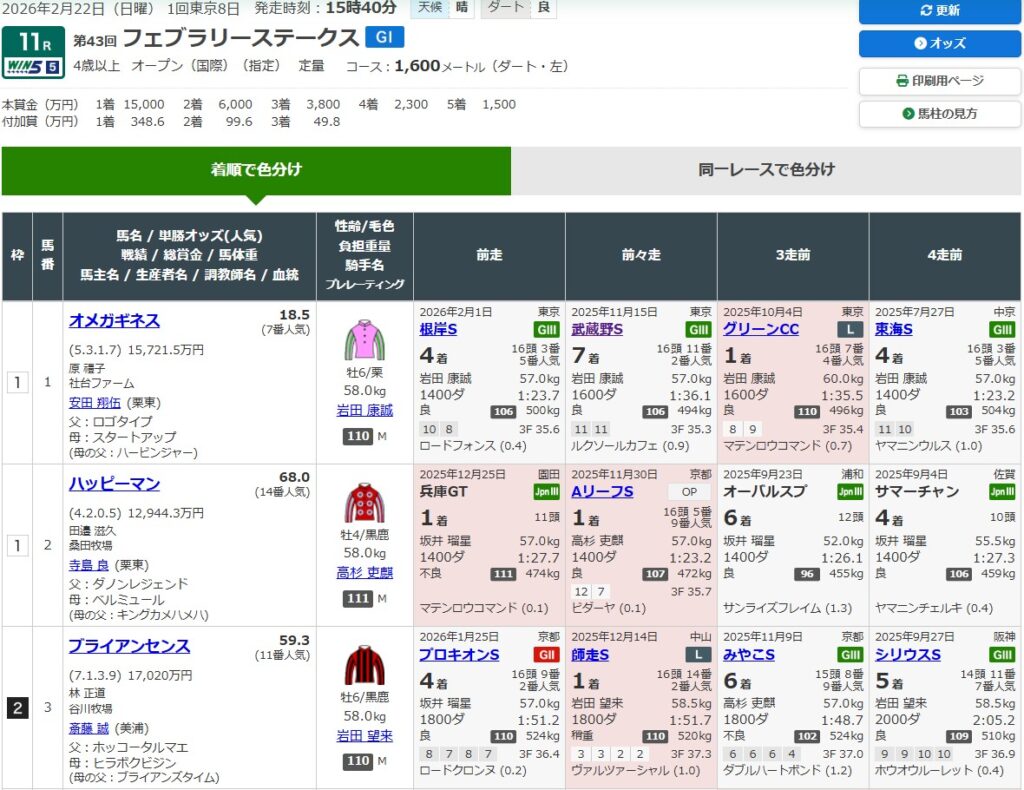 2026年フェブラリーSの予想