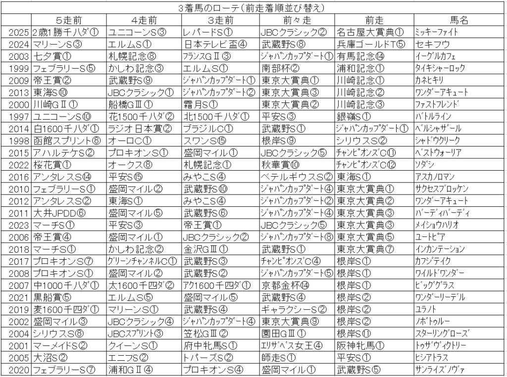 2025年 第42回フェブラリーS 【過去20年のデータ】傾向と分析、ローテーション