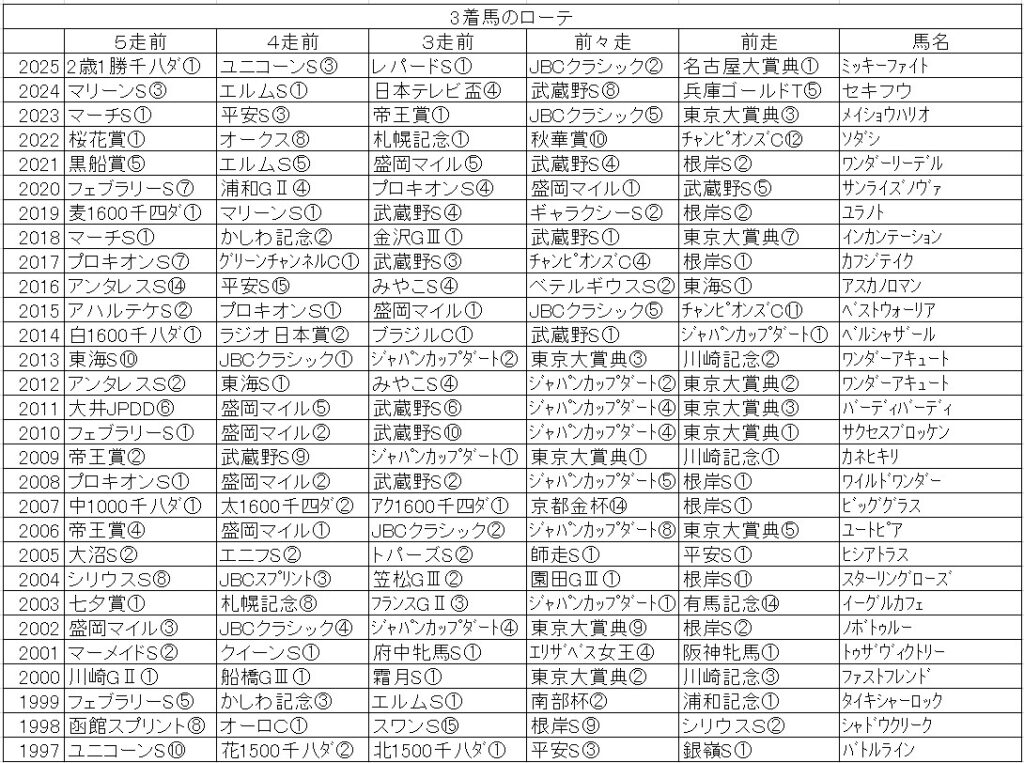 おまけ3着馬のローテ